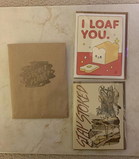 Secret Planet, art prints, zines and cards from a screen-printing studio. Great vibe with art and prints from local and global artists. Got some cute cards from here.