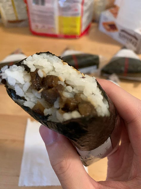 My friend recommended an onigiri/omusubi place to try out, and I got a variety of meat and vegetables that were good. Omusubi Bar Suzume, which is a food stall with some seating and benches close by. The omusubi were decent, high quality ingredients with a seasonal menu. This place is great for a quick snack, around $4 each.